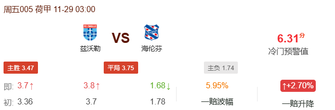 本日为大家带来荷甲,兹沃勒VS海伦芬的解读。