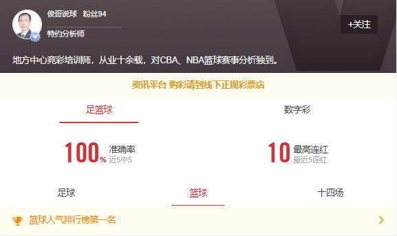 人气第一!5连红特约分析师俊哥说球持续送红单,跟车收米点击不迷路
