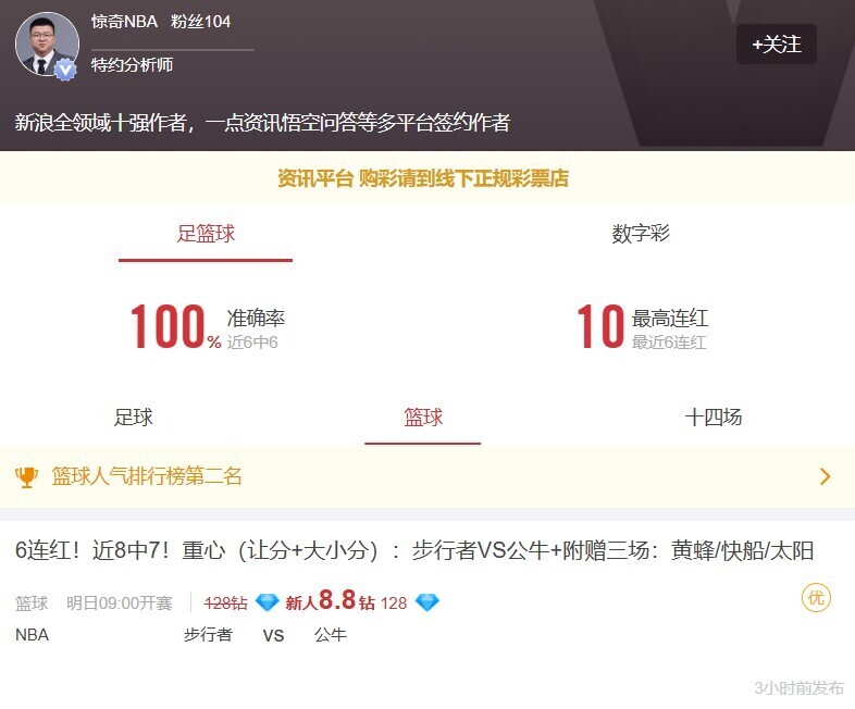 惊奇NBA六连红!今日篮球推荐已发车,速速点击查看
