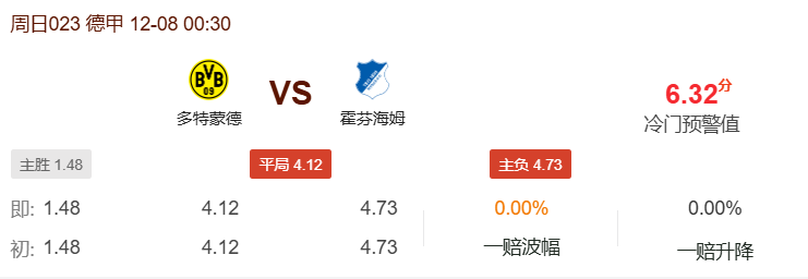 周日023德甲推荐:多特蒙德VS霍芬海姆