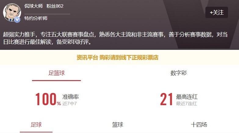 捷报频传!侃球大师专家七连红,点击本段文字跟上收割节奏!