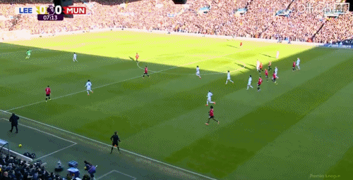 第40分钟,曼联约罗头球接力攻门,被利兹联门将佩利扑出,双方0-0进入中场休息。
