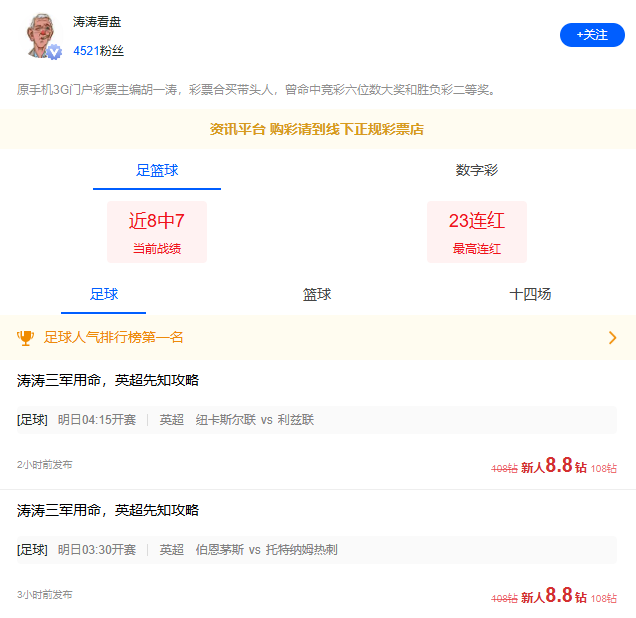 人气第一!涛涛看盘三军用命,英超精选冲击连红>>